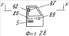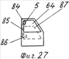 Если ручку 5 (фиг.27) открывания двери поместить в салоне в верхней части двери на раме 84 окна двери и кинематически (например, рычагами 85) соединить с замком 86 двери, то, опуская (положение 87) или поднимая стекло 64, можно открывать или закрывать доступ к ручке 5. Человеку, выходящему из машины, приходится наклоняться, с внешней стороны ловить ручку, чтобы, взявшись за нее, захлопнуть дверь машины, что очень неудобно. Поэтому многие, не наклоняясь, просто нажимают рукой на грязную раму окна и захлопывают дверь автомашины. В связи с этим в верхней части рамы 84 (фиг.28, 29) окна двери можно установить откидывающуюся крышку – экран 88, кинематически (например, рычагами, тросами 85) связанную с внутренней ручкой 89 открывания двери, с экраном ручки 5 или с замком двери. Крышка-экран 88 вращается на оси 90 и имеет уплотнитель 91 по контуру. При закрытой двери крышка-экран 88 прикрывает от пыли и осадков внутреннюю поверхность 92 рамы 84. Открывая за внутреннюю ручку 89 дверь, связанная с ручкой 89 крышка-экран 88 тоже открывается в положение, показанное на фиг.29, открывая чистую поверхность 92 рамы 84. Нажимая ручкой на чистую часть 92, захлопываем дверь. Срабатывают защелка или замок двери и крышка-экран 88, связанная с ними кинематически, закрывается.