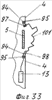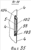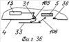 На фиг.34, 35 показан экран 102 вращения произвольной конфигурации в сечении и перемещающийся приводом 13 (например, электромагнитом) по радиусным направляющим 103 и 104. При вращении экранов на некоторый угол ручка 5 (фиг.30, 35) или открывается, или закрывается. На фиг.36 показан экран 33 с тремя шарнирно к нему прикрепленными рычагами 105 и 106. Два рычага 105 другим концом жестко прикреплены к валу 31, поворачивающемуся в корпусе 4 от привода 13. Рычаг 106 другим концом шарнирно закреплен на корпусе 4. Привод 13 поворачивает вал 31, рычаги 105 и экран 33, который прижимается к уплотнителям 36, закрывая ручку 5.