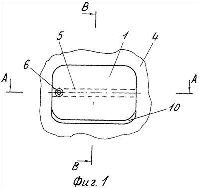 Экран 1 (фиг.2, 3) может быть плоским, выпуклым (фиг.6) в любую сторону, например наружу. Экран 14 (фиг.6) может быть цилиндрическим, т.е. боковые направляющие выполнены одного радиуса. Экран 15 (фиг.7 – правая дверь автомобиля) – конический, приводится во вращение от привода 13 и вращается по образующей конуса относительно неподвижной точки 16. Экран 17 для правой двери (фиг.8, 9) выполнен в виде усеченного конуса, т.е. боковые направляющие имеют разные диаметры. Выпуклости 18 и 19 корпуса двери 4 выполнены для улучшения аэродинамики автомобиля. Экран 20 (фиг.10) может быть выполнен сферическим (в виде части сферы) с одинаковыми радиусами боковых направляющих, причем радиусы боковых направляющих могут быть выполнены разными. Из-за эластичности уплотнителей в боковых направляющих радиусы боковых направляющих могут быть любыми. Кроме того, экран защитного узла может иметь не только плоскостную, цилиндрическую, коническую или сферическую форму, но и также эллипсную, овальную, волнообразную, зубчатую, ребристую, двухскатную или другую любую форму, под которую должны быть соответствующим образом выполнены верхняя направляющая 2 (фиг.4) с уплотнителем 3 и нижние уплотнители 10 (фиг.1) или 9, 10 (фиг.5). Это относится к жестким, упругим и мягким экранам. За поднятым экраном, около ручки, можно разместить лампочку освещения, используемую в ночное время. При опускании экрана ручка освещается. Освещение можно сделать постоянным или сделать в виде иллюминации. За прозрачным экраном можно разместить лампочку повторителя сигнала поворота транспортного средства. Экран и ручку можно сделать с подогревом. Если на внутренней части экрана закрепить щетку, то экран может использоваться для очистки и защиты номерных знаков, фар, поворотников, фонарей транспортных средств. Экран может быть выполнен из бесцветного прозрачного стекла или цветного, тонированного, противоударного стекла, или металла, камня, пыле-, влагонепроницаемой ткани, или пластика и т.д.