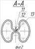 На бурильных трубах (не показаны) спускают компоновку, состоящую из посадочной головки 1 (фиг.1), верхний конец которой соединен с колонной бурильных труб (не показана), а нижний конец 2 левой резьбой 3 – с верхним концом 4 секции 5 перекрывателя. Далее нижний конец 6 верхней секции 5 перекрывателя при помощи резьбы 7 соединен с нижней секцией 8 перекрывателя, снабженной башмаком 9, имеющим отверстие 10 калиброванного размера. Секции 5, 8 снабжены фиксаторами 11 (например, фиксаторы выполнены в виде контактной точечной сварки в количестве, необходимом и достаточном для обеспечения изначальной формы поперечного сечения профильного перекрывателя во время спуска его в скважину), при этом фиксатор 12, находящийся перед соединением башмака 9 с нижней секцией 8, обладает меньшей прочностью при воздействии внутреннего давления. Фиксаторы 11 и 12 (фиг.2) выполнены по линии 13 сопряжения внутренних поверхностей впадин профиля секций перекрывателя 5, 8 (фиг.1), которые при создании избыточного давления во время проведения спуска с прямой промывкой скважины обеспечивают сохранение изначальной формы спрофилированных впадин секций 5, 8 перекрывателя. Внутренние каналы бурильных труб (не показаны), отверстие в посадочной головке 1, внутренняя полость секций 5, 8, башмак 9 с отверстием 10 образуют канал 14 для прохождения промывочной жидкости. Создавая насосом (не показан) избыточное давление в канале 14, не превышающее расчетное давление для разрушения фиксаторов 11, 12, осуществляют спуск секций 5, 8 перекрывателя в зону осложнения (не показана). Затем поднимают давление в канале 14 изменением расхода прокачиваемой жидкости. Разрушение фиксатора 12, находящегося в нижней части нижней секции 8 перекрывателя, происходит при давлении, недостаточном для разрушения остальных фиксаторов 11 во всех секциях перекрывателя. Выправление стенок секции 8 перекрывателя в его нижней части создает гарантированные условия, что не будет происходить выравнивание давления в канале 14 и за наружной стенкой секций 5, 8 тем, что выправление нижней части стенки секции 8 в плотной породе приводит к отделению канала 14 от зоны осложнения (не показана). После выправления стенок секций 5, 8 перекрывателя, вращая колонну бурильных труб (не показана), отсоединяют верхнюю секцию 5 перекрывателя от посадочной головки 1 с помощью левой резьбы 3 и выполняют дальнейшие работы по расширению цилиндрических участков перекрывателя по окончательному прикатыванию стенок секций 5, 8 перекрывателя, по подъему или разрушению башмака 9.
