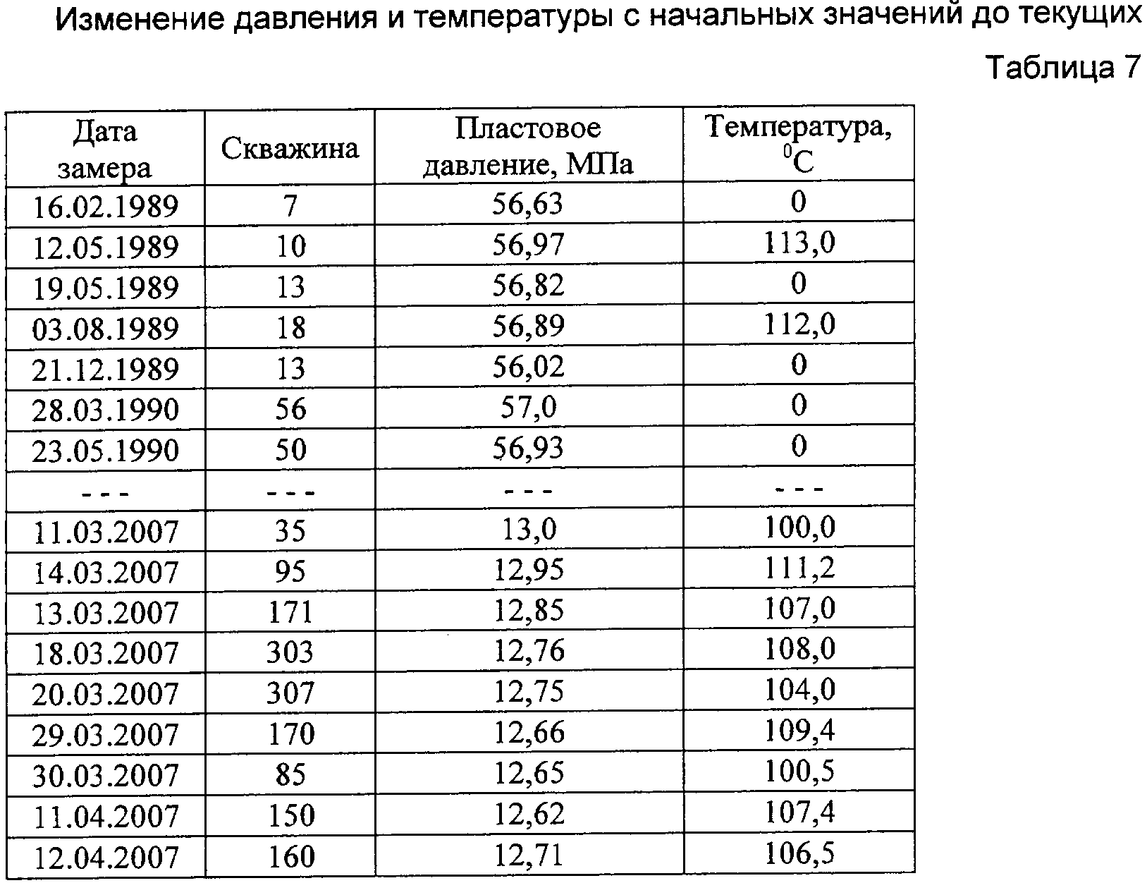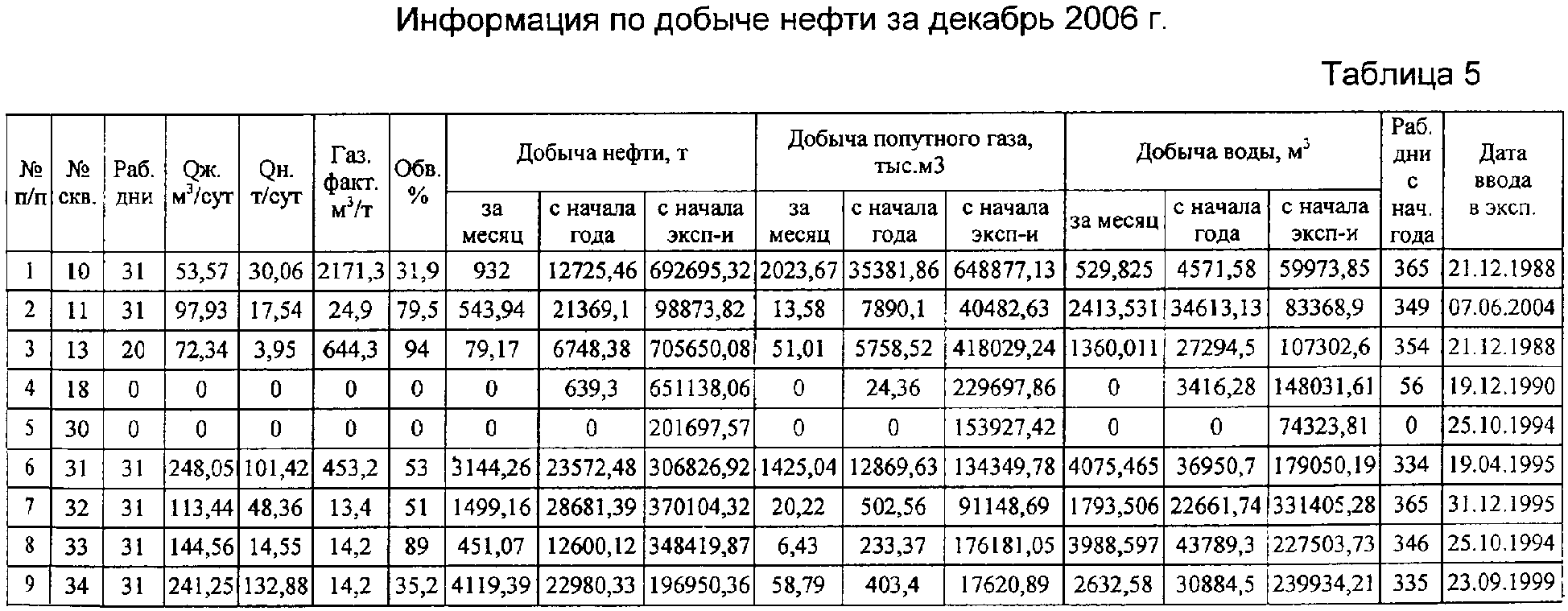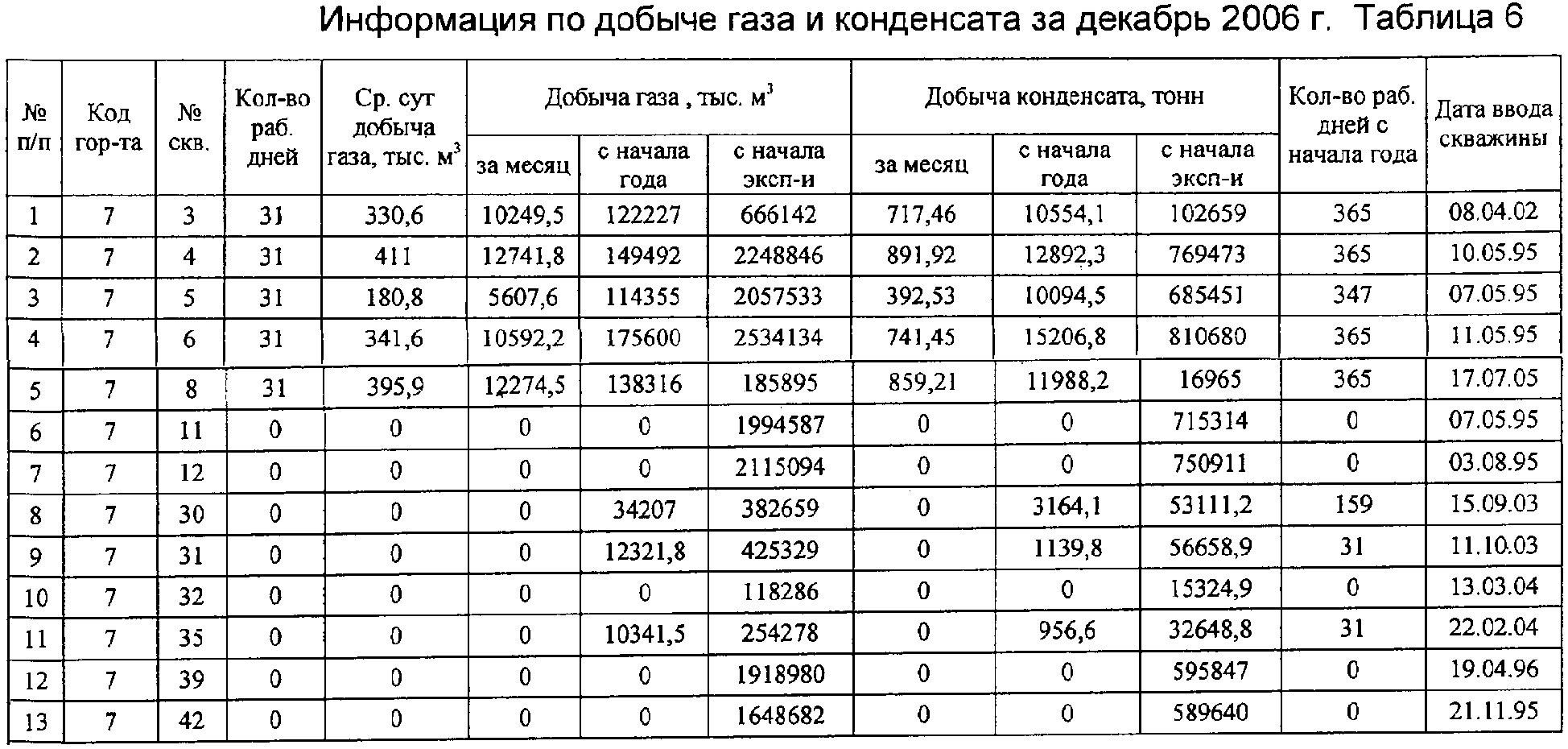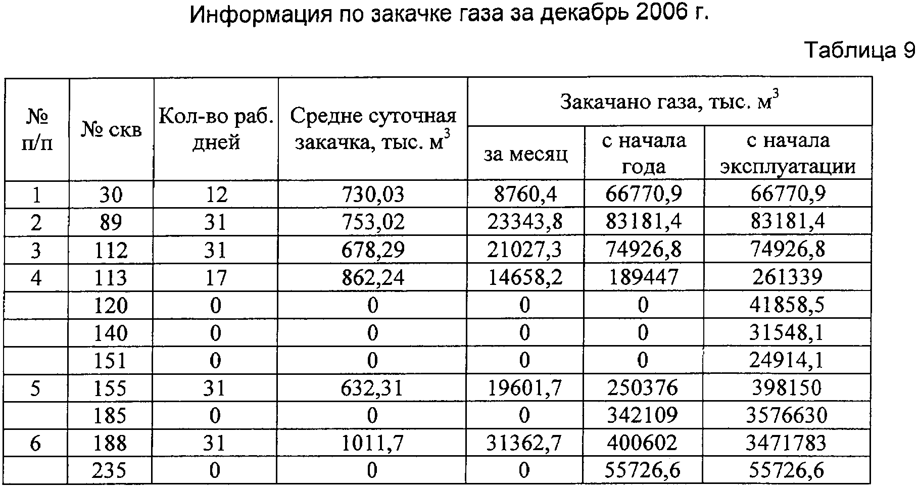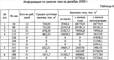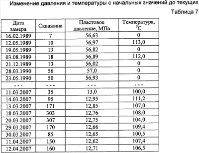 Файл траектории скважин и геометрия модели. По окончании работы опции Schedule формируется файл Schedule для импорта в Eclipse. Используя полученную базу данных (таблицы 1-4), строят геологогидродинамическую модель техногенно измененного месторождения, применяя признанные в этой области программные средства, например Petrel, Eclipse. Для адаптации модели используют фактические помесячные показатели работы скважин за последние 1-3 года (таблицы 5-9), включая результаты термогидродинамических исследовании. Анализ состояния разработки месторождения по адекватной текущему техногенно измененному состоянию адаптированной модели показывает участки с высокой остаточной нефтегазоконденсатонасыщенностью, термодинамические аномалии и уточненные водо- и газонефтяные контакты. Мероприятия по совершенствованию разработки и повышению коэффициента нефтегазоконденсатоизвлечения включают оптимизацию системы и интенсивности закачки воды и сухого газа на определенных участках, бурение дополнительных скважин и боковых горизонтальных стволов на пласты и зоны с высокой остаточной нефтегазоконденсатонасыщенностью, разукрупнение эксплуатационных объектов, закачку потокоотклоняющих реагентов и др. по вариантам. Выполняют расчеты прогнозных показателей добычи/закачки по вариантам на адекватной текущему состоянию месторождения геолого-гидродинамической модели и внедряют наиболее эффективный из них по технико-экономическим показателям и конечной нефтегазоконденсатоотдачи. При внедрении предложенного способа разработки абсолютные приросты коэффициентов извлечения по отношению к достигаемым при реализации действующего проекта составляет не менее: по нефти – 2,5-3,0%; по конденсату – 2,0-2,5%; по газу – 1,5-2,0%. Применение предложенного способа позволит повысить нефтегазоконденсатоотдачу месторождения.