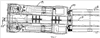 На фиг.3а и 3b лучше всего видно, что средство L также содержит приводной узел, как правило, обозначенный номером 34 позиции. Приводной узел 34 специально предназначен для выборочного содействия продвижению вперед или обратному ходу конвейерной цепи Т. Более конкретно, приводной узел 34 содержит пару согласованных сдвоенных комплектов 36, 38 приводных цилиндров. Из каждого комплекта 36, 38 только один приводной цилиндр показан на фиг.3а и 3b, так как цилиндры тандемного типа установлены на главном несущем каркасе 12 по бокам конвейера 14 (смотри также фиг.2). Видно, что передний комплект 36 цилиндров установлен продольно на определенном расстоянии от заднего комплекта 38 цилиндров и на одной линии с ней. Более того, из изображения, представленного на фиг.2, понятно, что каждый комплект 36, 38 цилиндров имеет левосторонний и правосторонний цилиндр. Оба цилиндра тандемного типа переднего комплекта 36 работают одновременно. Подобным образом оба цилиндра тандемного типа заднего комплекта 38 работают одновременно.