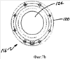 Как дополнительно показано со ссылками на фиг.8, устройство 100 также содержит первый привод 116 и второй привод 118. Как показано на фиг.7а и фиг.7b, первый привод 116 может содержать гидравлический цилиндр 120 и соответствующий поршень/направляющий элемент 122, выполненный с возможностью смещения. На переднем конце направляющего элемента 122 имеется первая выпуклая головка 124. В представленном варианте выполнения радиус кривизны выпуклой головки 124 составляет 406 мм (шестнадцать дюймов). Хотя это не показано, второй привод 118 может содержать второй гидравлический цилиндр, второй поршень/направляющий элемент, выполненный с возможностью смещения, и вторую головку, которые аналогичны описанным выше со ссылкой на первый привод 116 и представленным на фиг.7а и фиг.7b.