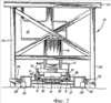 К каждому приемному барабану 56 присоединен канат или прочный трос 60. Более конкретно, расположенный ближе к месту крепления конец каждого каната 60 прикреплен к соответствующему приемному барабану 56 таким образом, чтобы вращение барабана отпускало или подтягивало канат. Дальний от места крепления конец каждого каната 60 прикреплен с помощью траверсы 62 к стропу 64, который держит поперечину 66. На каждом конце поперечины 66 прикреплена пара висящих крюков 68. Крюки 68 предназначены для захвата штифтов Р, расположенных по краям конвейерного узла U, который должен быть подвешен с помощью каната 60 лебедки. Конечно, может быть использована любая другая соответствующая конструкция, предназначенная для соединения каната 60 лебедки с конвейерным узлом U.