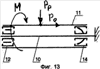 На Фиг.12 представлена схема, в которой для обеспечения работоспособности механизма при нагрузке на вал 10 от осевых сил Ро, направленных в противоположные стороны, радиальных сил Pр и крутящего момента М применены радиальный, сферический подшипник 13 и блок из радиального, цилиндрического подшипника 12 и осевого подшипника двухстороннего действия 15, при этой схеме возможна компенсация радиальных и угловых деформаций вала 10.