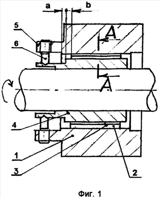 Для восприятия радиальной нагрузки и обеспечения компенсации осевых перемещений подвижная плата 4 и неподвижная плата 1 выполнены цилиндрическими. Неподвижная плата длиннее подвижной платы на величину осевого люфта подшипника а в пределах неравенства а