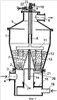 Через стакан 17, установленный с возможностью вращения в коробе 18, соединенного с подводящим трубопроводом 19, подводят вторичный теплоноситель с температурой более высокой, чем у основной части свежего теплоносителя. Проходя через щелевое сопло 21 и отверстия газораспределительной решетки 2, поток вторичного теплоносителя создает в слое инертных тел зону локального фонтанирования. Благодаря высокой температуре и большой относительной скорости теплоносителя и инертных тел процесс тепло- и массообмена в этой зоне идет весьма интенсивно, что приводит к почти мгновенной сушке пленки исходного материала на поверхности инертных тел. В остальной массе слоя в это время происходит досушка материала и отделение высушенного материала от инертных тел вследствие их соударений.