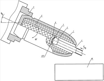 Аналогом в качестве примера реализации извлечения ВВ из корпуса боеприпаса может служить способ расснаряжения [Патент ФРГ №4010757, F42D 5/04. Способ удаления ВВ из корпуса 1992], предусматривающий удаление ВВ из корпуса с помощью воды, подаваемой под высоким давлением. Вода направляется на ВВ из вращающихся сопел или боеприпас вращается относительно стационарных сопел. Жидкость подается через насадок с соплом, ось которого наклонена к оси головки штанги, которой задают вращение вокруг собственной оси и осевую подачу.