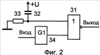 Блок 11 установки в исходное состояние выполнен, например, по схеме, приведенной на фиг.2. Схема его включает логический элемент 2ИЛИ-НЕ 31, выход которого является выходом блока 11 установки в исходное состояние, последовательно включенные конденсатор 32 и резистор 33, образующие времязадающую RC-цепь, подключенную к источнику напряжения питания +U, для формирования импульса положительной полярности в момент подачи напряжения питания в схему предлагаемого устройства и подачи его с резистора 33 на один из входов логического элемента 2ИЛИ-НЕ 31, одновибратор 34, выполненный, например, по схеме, идентичной схеме одновибратора 10 и описанной выше, на основе триггера и формирующей RC-цепи, выход которого подключен ко второму входу логического элемента 2ИЛИ-НЕ 31, а вход его является входом блока 11 установки в исходное состояние.