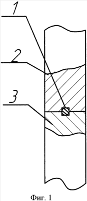 В процессе получения данных образцов экспериментально была получена минимальная разница (2 и более раза) в температурах плавления свариваемых заготовок и искусственного дефекта. Если в ходе эксперимента данное условие не выполнялось, то искусственный дефект (1) (в нашем случае проволока) частично или полностью расплавлялись и разрушались. Следовательно, данный дефект изменял свои размеры и не мог быть использован в составе образца в качестве искусственного калиброванного дефекта.