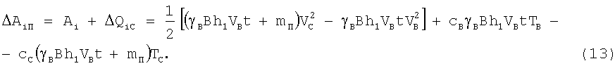 Изменение энергии потока воды, входящей в лоток при температуре Тв, осуществляется за счет увеличения скорости потока, потери тепла через стенки теплоизоляционного лотка и теплофизикохимические процессы (фазовые переходы, теплота смачивания и т.п.) оттаиваемой почвы до температуры Тс при выходе из лотка. Поэтому изменение тепловой энергии потока