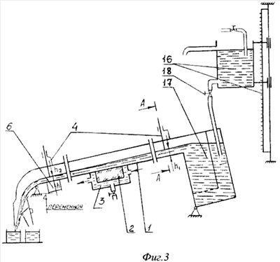 Рассмотрим течение воды в лотке без образца почвогрунта (Фиг.1). Расход воды в лотке без почвенного образца в любых сечениях QB=const:
