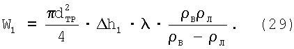 где W2 – тепловая энергия суспензии, Дж; W1 – тепловая энергия потока воды, Дж; Tв1 – температура потока вода в сечении 1-1, К; Tв2 – температура потока воды в сечений 2-2, К; св – удельная теплоемкость воды, Дж/(кг·К).