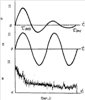На фиг.2 представлены временные зависимости сигналов-откликов МЭС при воз< эмвоз<2 / о, б) воз=2 / о, в) о<2 / воз= н< в, где воз, эм, t, – длительности сигналов возбуждения, эмиссии и продолжительности измерений соответственно, о – собственная круговая частота контролируемого изделия, н, в – нижняя и верхняя круговые частоты широкополосного нестационарного случайного воздействия соответственно.