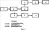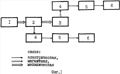 Согласно блок-схеме фиг.1 устройство, реализующее способ измерений, состоит из последовательно соединенных источника 1 внешнего возбуждающего усилия, контролируемого изделия 2 и/или контролируемых конструктивных элементов 3 изделия 2, датчика 4, усилителя-преобразователя 5, регистратора 6.