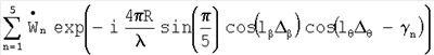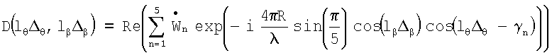 l =0, …, L -1 – порядковый номер угломестного направления, характеризуемого углом l  между прямой линией, находящейся в плоскости, перпендикулярной плоскости пеленгования, проходящей через центр антенной решетки, и проекцией вышеупомянутой прямой линии на плоскость пеленгования;