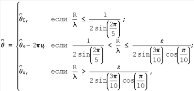 где  – угол, зависящий от отношения радиуса R антенной решетки к длине волны , радиосигнала и выбираемый в соответствии с соотношением,