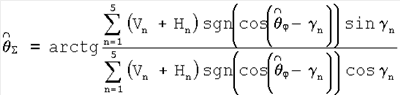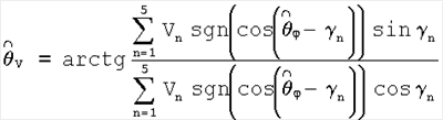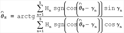 где – результат оценивания в пределах от 0 до 2 радиан азимута источника радиосигнала по формуле