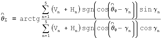 и определяют в пределах от 0 до 2 радиан азимут источника радиосигнала, характеризуемый как угол, отсчитываемый по часовой стрелке между осевой линией антенной решетки и проекцией направления вектора распространения электромагнитной волны радиосигнала на плоскость пеленгования, по формуле