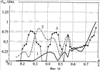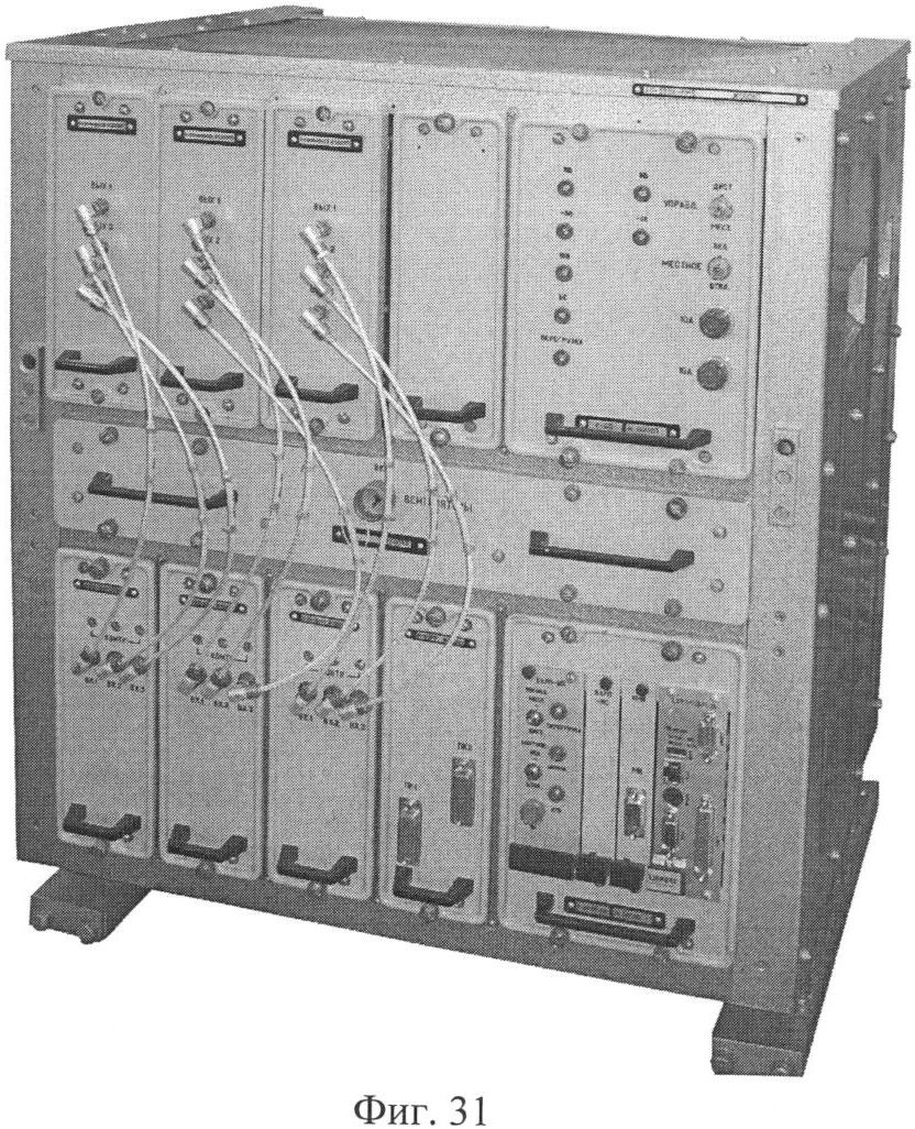 где n=1, 2, …, 5 – порядковый номер антенн антенной решетки, а за первый порядковый номер антенны антенной решетки принята антенна, через фазовый центр которой проходит осевая линия антенной решетки, причем радиус R антенной решетки выбран обеспечивающим априорно известный для минимальной длины волны min радиосигнала максимальный уровень max боковых лепестков диаграммы направленности фазированной антенной решетки с равноамплитудным возбуждением, который в зависимости от заданной достоверности пеленгования выбирается в пределах 0 max<1, измерение комплексных взаимных спектров пар сигналов и , когерентно принятых соседними n-й и k-й антеннами, в соответствии с формулой