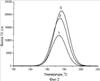 На фиг.2. приведена КТВ образцов детекторов ТЛД-500К, облученных при температуре 300°С излучением 90Sr/90Y источника, дозой 64 мГр, охлажденных до комнатной температуры и облученных в этом состоянии в течение 5 минут излучением светоизлучающего диода. ТЛ пик на КТВ при 180°С (фиг.2) является следствием оптически стимулированного переселения носителей из глубоких ловушек, заполненных при высокотемпературном облучении (ФТТЛ), на основную, дозиметрическую ловушку. Выход ФТТЛ пропорционален количеству переселенных из глубоких ловушек зарядов, которое, в свою очередь, пропорционально дозе, поглощенной при высокотемпературном облучении детектора. Регистрация ФТТЛ положена в основу практической реализации известного способа (прототип) измерения дозы в твердотельных детекторах ионизирующих излучений на основе оксида алюминия, накопленной при повышенной температуре окружающей среды.