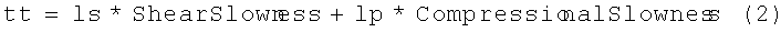 Следует понимать, что уравнение (2) относится к P-волнам, преобразованным в S-волны (P-S преобразование), и что уравнение (2) можно легко изменить для точек S-P преобразования и точек P-P отражения. Для величины, обратной скорости волны сдвига (ShearSlowness), можно ввести сокращение «ss», а для величины, обратной скорости волны сжатия (CompressionalSlowness), можно принять сокращение «cs», которые используются в последующих уравнениях.