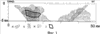 На фиг.2 представлен пример обнаружения источника гравитационного и магнитного полей, которым в данном случае является нефтяная залежь (черная заливка – Г), установленная по данным бурения. В разрезе по одному из профилей показаны изолинии значений ковариаций расчетных и соответствующих фактически наблюденных полей для магнитного поля (тонкие линии со штрихами, обращенными по направлению уменьшения значений ковариаций – А), область пониженных значений ковариаций для гравитационного поля (горизонтальная штриховка – Б), область повышенных значений ковариаций для поля содержаний брома ТМГМ (косая штриховка – В).