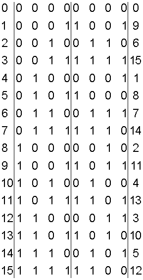 где левый столбец – это номера входов второго блока перекрестных связей плюс один, а правый столбец – номера выходов второго блока перекрестных связей плюс один, представленных в двоичном виде.