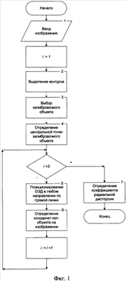 Блок-схема алгоритма калибровки радиальной дисторсии представлена на фиг.1.