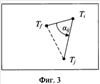 Углом с i-ой точки объекта на j-ую точку считается угол между вертикальной осью кадра и направлением на j-ую точку (фиг.3). По теореме косинусов из треугольника ТfTiTj
