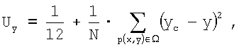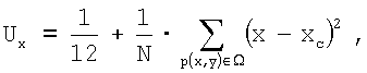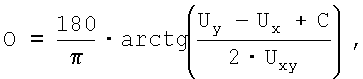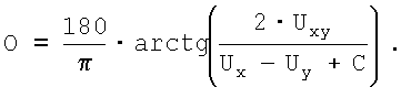 Ориентация определяется как угол в градусах между максимальной осью инерции и осью X. Если Uу>Ux, то ориентация О вычисляется с помощью формулы: