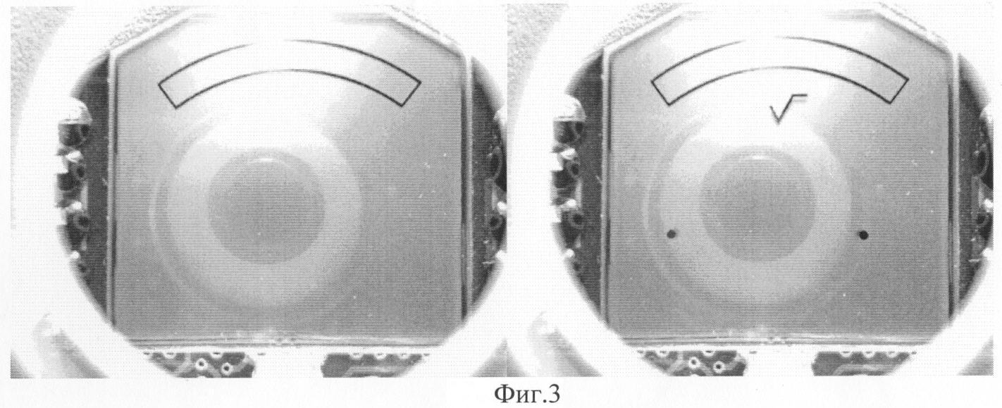 – фиг.3 – снимок ЖКИ без активных сегментов и снимок ЖКИ с опорными сегментами;