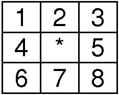 – свертка двумерной функции f (исходное изображение) по функции (маске) g, где параметры n0, n1, m0, m1 – задают маску фильтра (окрестность обрабатываемого в данный момент пикселя).