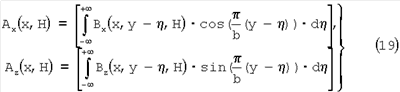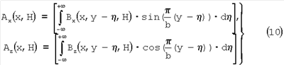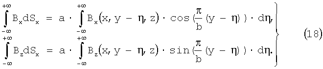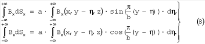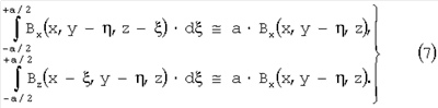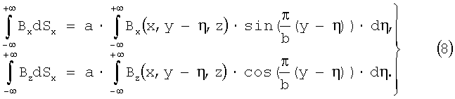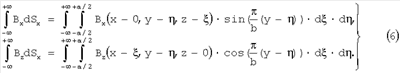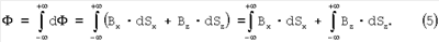 В любой точке преобразователя на расстоянии R(x, у, Н) диполь создает магнитную индукцию В(х, y, z) (раскладывающуюся на компоненты Bx, By, Bz), которая через элементарную площадь dS создает элементарный поток dФ=(B·dS).