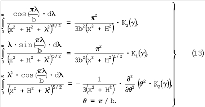 Интегралы (11) согласно [8, 9] – табличные и сопряжены с вычислением модифицированных функций Бесселя 2-го рода К2( ) и 1-го рода К1( ) от аргумента
