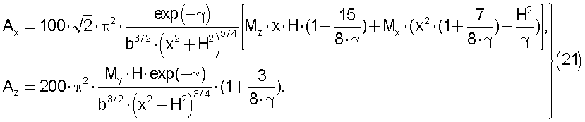 Формула (26) может использоваться в инженерных расчетах чувствительности МП к различным моделям обнаружения, зная величину дипольного момента (М), скорость (V) и удаленность (H) его перемещения.