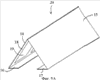 [0022] Фиг.1 – это схематическое изображение солнечного концентратора согласно заявленному изобретению, где F относится к солнечному потоку. Отражатели выполнены в виде клиновидных зубцов, расположенных рядами, с размещенными между ними рядами солнечных элементов.