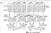 Каждое кольцевое гибридное соединение SP4-SP11, используемое в качестве разделителя, имеет первый входной вывод (обозначенный стрелкой, направленной внутрь), подсоединенный с возможностью приема входного сигнала, и второй входной вывод, подсоединенный к соответствующей оконечной нагрузке Т (согласованной нагрузке). Оконечная нагрузка Т обеспечивает нулевой входной сигнал: следовательно, кольцевые гибридные соединения или разделители SP4-SP11 разделяют сигналы на своих входных выводах между своими соответствующими выходными выводами с соответствующими коэффициентами разделения импедансов между входными и выходными выводами в каждом случае.
