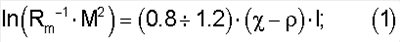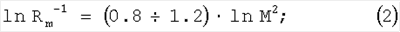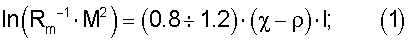 На основе величины из уравнения (2) отдельно вычисляют величину , определяющую потери на выход из резонатора на его оси без разбегания лучей, и величину lnM2, определяющую потери на выход из резонатора за счет разбегания лучей от оси резонатора.