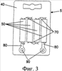 фиг.2 упрощенно изображает вид спереди упакованного в блистер блока аккумуляторов, который может быть использован в устройстве для подзарядки большого числа типов аккумуляторов, показанных на фиг.1, согласно настоящему изобретению;