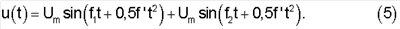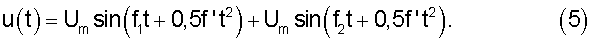 Если ввести обозначения, что f1=Аi – первая начальная частота; f2=Bk – вторая начальная частота; 0,5 f’ – скорость изменения частоты синтезируемого сигнала,
