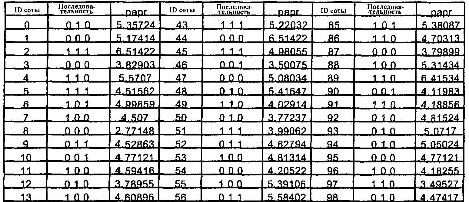 Последовательность уменьшения PAPR является последовательностью для уменьшения PAPR у контрольных символов, и имеет длительность NR. Последовательность уменьшения PAPR заранее определяется в системе связи OFDM в соответствии с ID соты и ID сектора, и подробное описание ее будет предоставлено позже в этом документе. Последовательность уменьшения PAPR с длительностью NR вводится в объединитель 209, и объединитель 209 формирует контрольный символ посредством назначения соответствующей поднесущей выходного сигнала сумматора 207 и последовательности PAPR. Длительность контрольного символа, выведенного из объединителя 209, равна NP=NG+NR.