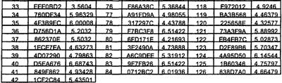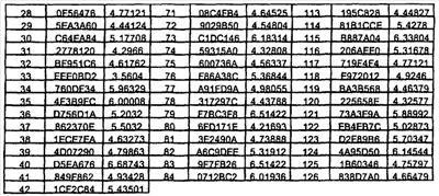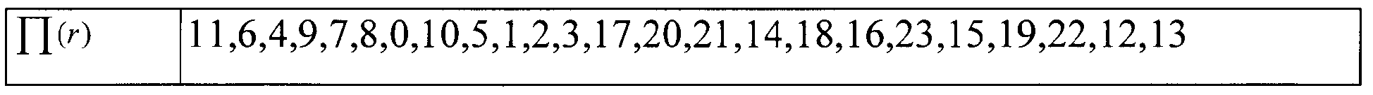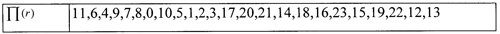 В уравнении (6) T(k) определяется как таблица 4, а определяется как шестнадцатеричные числа, показанные в таблице 5.