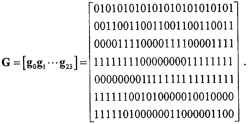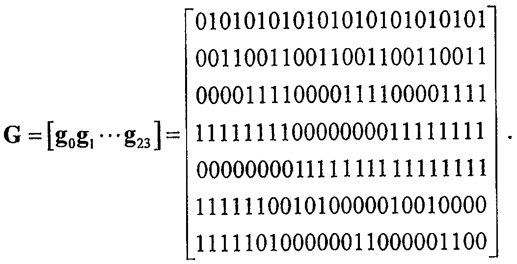 В случае уравнения (7) порождающая блочный код матрица G задается как