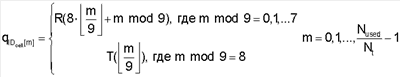 где R(r) обозначает первую последовательность, Т(-) обозначает вторую последовательность, bIdsell+1 обозначает векторы, включенные в строку матрицы, gП(r) обозначает вектор-столбец порождающей матрицы.