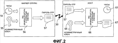 Фиг.2 схематично иллюстрирует процесс аутентификации, выполняемый маркером OTP, согласно предпочтительному варианту осуществления изобретения.