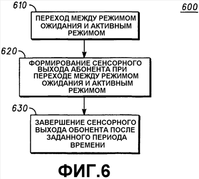 На фиг.6, в блоке 620, конфигурируемый абонентом сенсорный выход мобильного устройства беспроводной связи формируется при переходе мобильного устройства беспроводной связи между режимами.