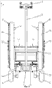 На фиг.7 показано, что шарнирные оси 55, 56 и 57 рычагов 52, 53 расположены таким образом, чтобы, когда устройство стопорения находится в положении блокировки, шарнирная ось 55 между двумя рычагами 52 и 53 находилась под плоскостью (Р), проходящей через две другие шарнирные оси 56 и 57 указанных рычагов 52 и 53. В этом положении крюк 49 удерживается в положении блокировки рычагами 52 и 53 независимо от действия гидравлического силового цилиндра 54. В разблокированном положении (фиг.6) шарнирная ось 55 между двумя рычагами 52 и 53 находится над плоскостью (Р). Это положение получают, оттягивая изогнутый рычаг 52 посредством гидравлического силового цилиндра 54, чтобы он повернулся на своей шарнирной оси 57. При этом шарнирная ось 55 и второй рычаг 53 перемещаются вверх и увлекают крюк 49, который они заставляют поворачиваться вокруг его шарнирной оси 50 таким образом, чтобы его конец высвободился перемещением вниз. Возврат в положение блокировки осуществляют нажатием на первый рычаг 52 посредством гидравлического силового цилиндра 54 таким образом, чтобы рычаги 52 и 53 переместились в направлении, обратном описанному выше.