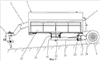 Устройства 7, 8 и 9 подборки и валкования содержат также подборщики 18, 19 и 20 для сбора скошенной массы с земли. Они расположены спереди конвейерных лент 10, 11 и 12 и закреплены на кронштейнах 14. Каждый подборщик 18, 19, 20 содержит грабельный механизм 21, вращающийся вокруг горизонтальной оси 22 для сбора скошенной массы с земли и ее укладки на соответствующую конвейерную ленту 10, 11 или 12. Это вращение может обеспечиваться не показанным на чертеже гидравлическим приводом.