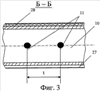 Как показано на фиг.2, увлажнители 10 выполнены из полиэтиленовых труб с внешним диаметром 40 мм. Этот материал увеличивает их прочность, долговечность и устойчивость к воздействию воды. Глубина закладки увлажнителей 10 составляет 0,50…0,52 м от дневной поверхности. Это позволяет избежать их повреждения при основной обработке почвы существующими почвообрабатывающими орудиями при сельскохозяйственных работах. Длина увлажнителей 10 оросительной сети составила 100 м. Наружный диаметр трубы равен 40 мм, а его внутренний – 36 мм.